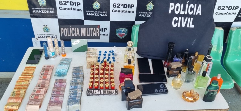 A Polícia Civil do Amazonas (PC-AM), por meio da 62ª Delegacia Interativa de Polícia (DIP) de Canutama (a 619 quilômetros de Manaus), com o apoio da Polícia Militar do Amazonas (PMAM) e Guarda Civil Municipal (GCM), prendeu em flagrante, no domingo (18/08), quatro indivíduos, de idades entre 22 e 36 anos, por tráfico de drogas e apreendeu drogas, celulares, dinheiro, munições de arma de fogo, motocicletas e perfumes.