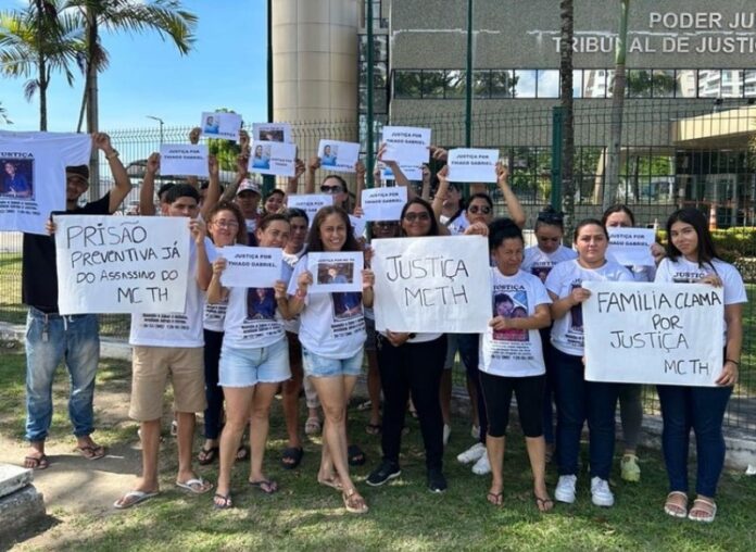 Familiares e amigos do cantor Thiago Gabriel dos Santos Braga, conhecido artisticamente como MC Thiago, realizaram um protesto na manhã deste domingo (29), em frente ao Tribunal de Justiça do Amazonas (TJAM), localizado na zona Centro-Sul de Manaus. O ato teve como objetivo cobrar justiça e impedir a soltura de Patrick Silva de Araújo, de 29 anos, suspeito de ser o autor do assassinato do artista.