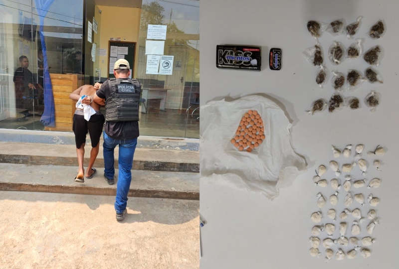“No local, encontramos 39 porções de crack, 16 trouxinhas de maconha e 45 comprimidos ainda não identificados. Diante do que foi apresentado, ele recebeu voz de prisão em flagrante e foi encaminhado à delegacia para os procedimentos”, explicou o delegado.