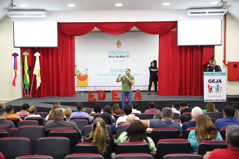 Com o tema “O esperançar em Paulo Freire: a EJA e a Educação” , a Prefeitura de Manaus, por meio da Secretaria Municipal de Educação (Semed), realizou, na noite de quarta-feira, 12/4, o Encontro dos Diretores da EJA (Edeja), no auditório Luiz Geraldo Pontes Teixeira da secretaria, no Parque 10 de Novembro, zona Centro-Sul.
