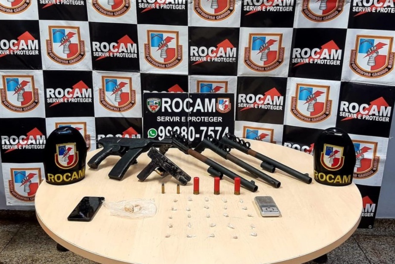 Com os suspeitos detidos, os policiais encontraram dois revólveres calibre 38, sendo um de marca Taurus, com numeração suprimida, e outro marca Rossi, numeração AA038974; seis munições de calibre 38; cinco porções de entorpecentes; e uma balança digital. Os dois homens foram conduzidos para o 6º DIP.