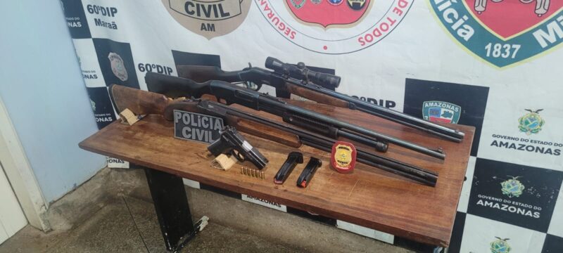 A Polícia Civil do Amazonas (PC-AM), por meio da 60ª Delegacia Interativa de Polícia (DIP) de Maraã (a 634 quilômetros de Manaus), apreendeu, na quarta-feira (05/03), quatro armas de fogo e munições utilizadas em atuações de piratas do rio. Os armamentos foram encontrados em uma região próxima ao rio Japurá.