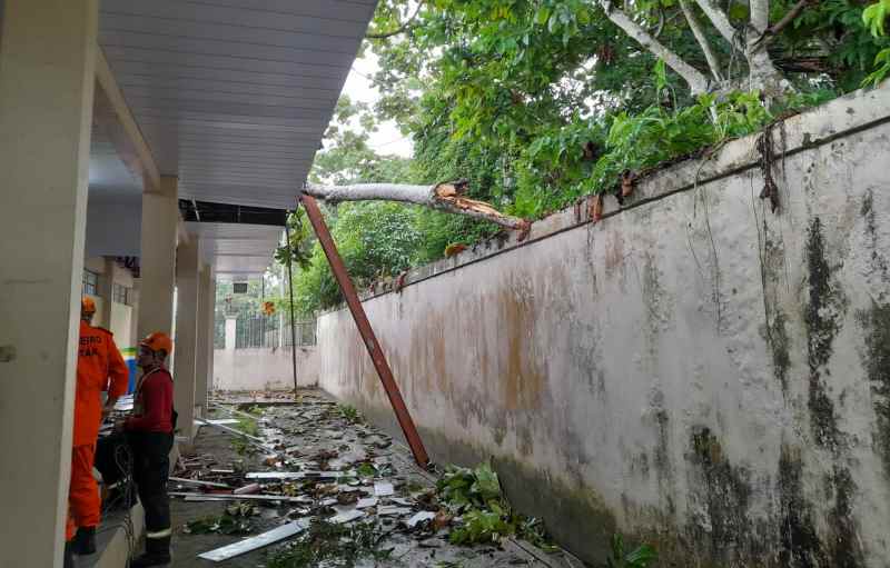 Em nota, a Secretaria de Estado de Educação e Desporto informa que, devido a forte chuva da manhã desta terça-feira (14), uma árvore de um terreno ao lado da Escola Estadual Homero de Miranda Leão desabou sobre o telhado da unidade de ensino, atingindo a sala da 2ª série do Ensino Médio.