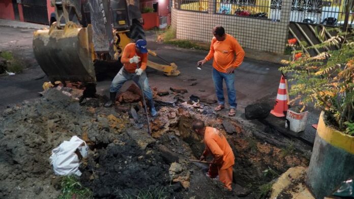 Uma equipe trabalhou com o apoio de uma retroescavadeira na via onde uma cratera se formou. As equipes removeram os tubos deteriorados e implantaram uma média de oito novos tubos que darão mais eficiência e segurança no funcionamento da rede.