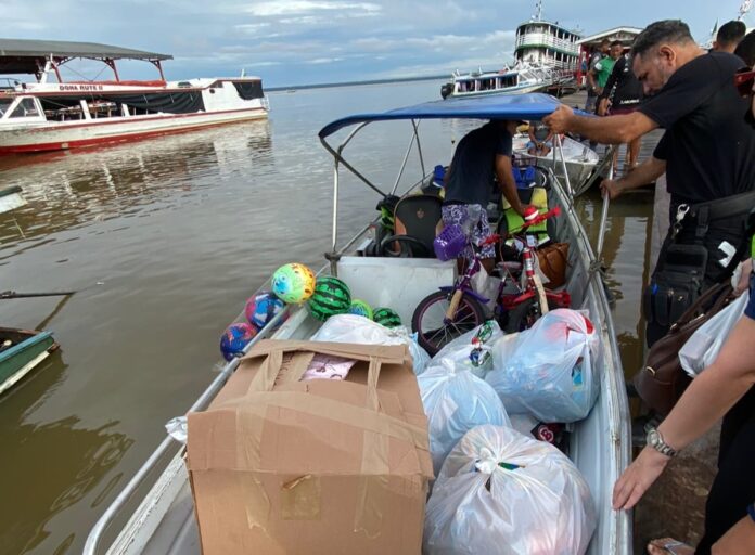 A distribuição dos brinquedos ocorreu neste mês de dezembro, sendo no primeiro dia nas comunidades ribeirinhas da Missão e do Caiambé e no segundo dia no abrigo institucional da cidade e na Escola Municipal Elyon de Oliveira, segundo o magistrado.