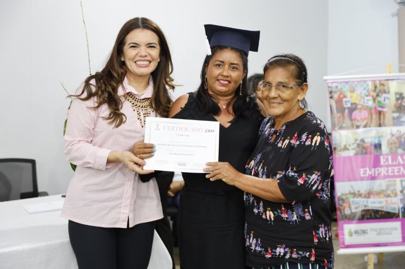 Cem mulheres receberam na última segunda-feira (31/07) o certificado de capacitação do “Projeto Elas Empreendem”, iniciativa de fortalecimento do empreendedorismo feminino da Associação Cidadania Social e Sustentabilidade (ACSSUS), de Parintins, que recebe apoio da deputada estadual Alessandra Campelo (Podemos) por meio de emenda parlamentar.