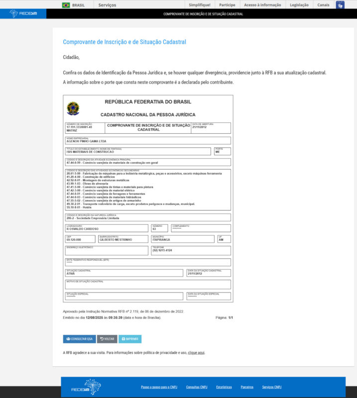 AGENOR PINHO GAMA LTDA – Rua Osvaldo Cardoso, s/nº , Bairro: Gilberto mestrinho, CEP: 69.120-000 – Itapiranga/AM.