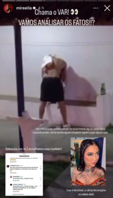 No perfil oficial da funkeira no Instagram, a equipe de Mirella divulgou um “VAR” do momento, buscando esclarecer as imagens polêmicas: “Chama o VAR, vamos analisar os fatos?”, iniciou a assessoria ao expor o vídeo.