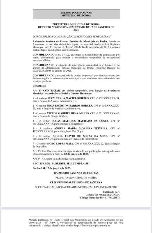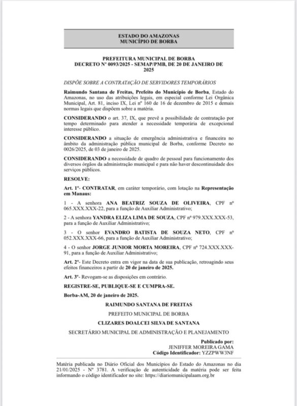 Até o momento, o prefeito Toco Santana não se manifestou sobre as acusações. A Câmara de Borba também não anunciou qualquer medida para investigar o caso, aumentando o clima de insatisfação entre moradores, que enfrentam problemas crônicos nos serviços de saúde, educação e infraestrutura.