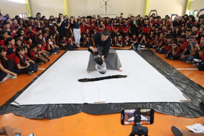 Alunos da Escola Estadual de Tempo Integral (EETI) Bilíngue Djalma da Cunha Batista participaram de uma experiência imersiva na cultura japonesa por meio de uma oficina de Shodô, arte da caligrafia japonesa, ministrada pelo mestre Kamari Maeda, artista japonês que está no Brasil para uma turnê em comemoração aos 130 anos da amizade entre o Brasil e o Japão.