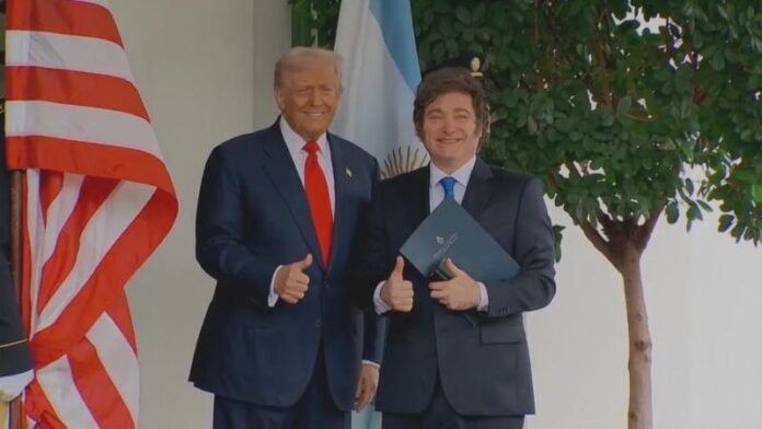 Presidente dos EUA, Donald Trump, recebe líder argentino Javier Milei na Casa Branca • Reprodução/Reuters