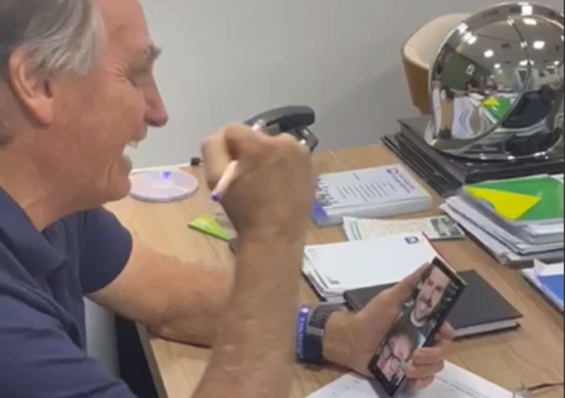 Os dois conversaram por videochamada nesta segunda-feira (20) junto ao deputado Eduardo Bolsonaro (PL-SP). Milei convidou a família Bolsonaro para participar da sua posse, em 10 de dezembro.