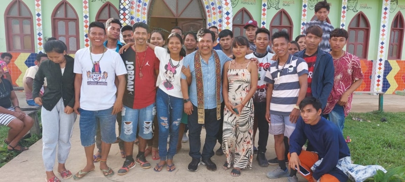 Durante a noite, o diretor-presidente continuou sua agenda se reunindo com 37 lideranças Tikuna na comunidade indígena Feijoal para apresentar o papel da Fundação, a visita de Trovão foi celebrada pela comunidade.