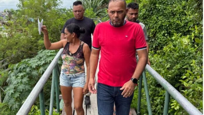 Acompanhado pelos líderes comunitários Frank Pereira e Telma Amorim, o parlamentar constatou o estado crítico de uma escadaria que serve como principal via de acesso para diversos moradores da área.