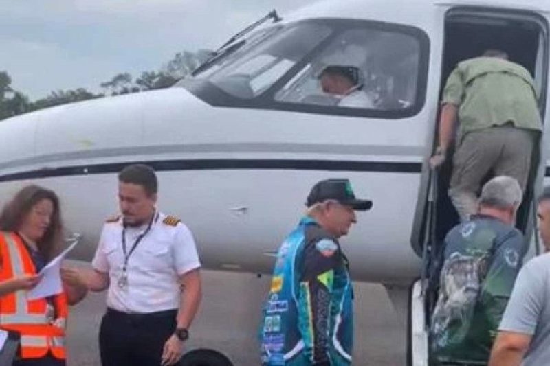 Nas imagens também é possível ver Gilcresio Salvador Medeiros, de 74 anos, proprietário da pousada Serra da Mesa, que fica na cidade de Niquelândia (GO), a aproximadamente 260km de Brasília, embarcando. Ele aparece com um boné, uma blusa de pescaria de manga longa azul e uma bolsa preta nas mãos.