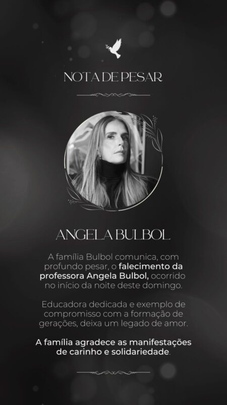 Na nota divulgada pela família, os parentes destacaram o legado deixado pela educadora e agradeceram as manifestações de carinho e solidariedade. “Educadora dedicada e exemplo de compromisso com a formação de gerações, Angela deixa uma história construída com amor, responsabilidade e entrega”, diz o comunicado.