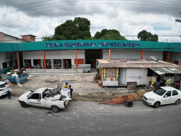 A Prefeitura de Manaus, por meio da Secretaria Municipal de Agricultura, Abastecimento, Centro e Comércio Informal (Semacc), entra na etapa final das obras da feira municipal do Mundo Novo, localizada no bairro Nova Cidade, zona Norte da capital, com previsão de entrega para o primeiro trimestre deste ano. Nesta terça-feira, 20/1, os serviços estão concentrados nos ajustes finais da parte elétrica, instalação de forro em PVC e pintura.