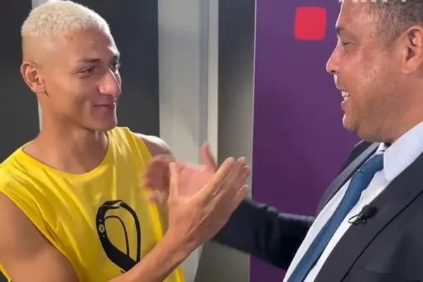 No encontro, Fenômeno fez uma série de elogios ao Pombo — como Richarlison é carinhosamente chamado — e deixou o atleta emocionado. “Caramba, tô sem palavras… Fico emocionado”. Em entrevista ao RonaldoTV, canal no Youtube e Twitch do ex-jogador, o Fenômeno fez a dancinha do pombo e fez uma pedido a Richarlison: