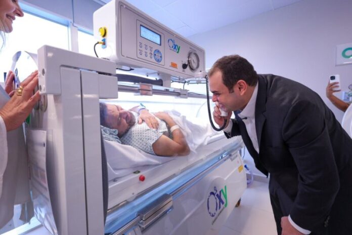 A Oxigenoterapia Hiperbárica consiste na inalação de oxigênio puro em ambiente pressurizado, com pressão superior à atmosférica. Nessas condições, ocorre um aumento significativo da quantidade de oxigênio no sangue, permitindo maior alcance aos tecidos com circulação comprometida. Desde fevereiro, mais de mil procedimentos já foram realizados no Hospital Delphina Aziz.