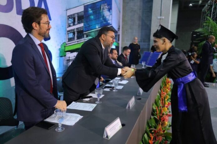 “Talvez para mim e para minha família tenha sido a primeira oportunidade de ver o mundo com outras cores. A educação de tempo integral transformou a minha vida e abriu portas. Estar aqui hoje, celebrando com os formandos e suas famílias, é um momento de muita emoção. Quero parabenizar o governador Wilson Lima por, desde 2023, iniciar essa parceria”, afirmou.