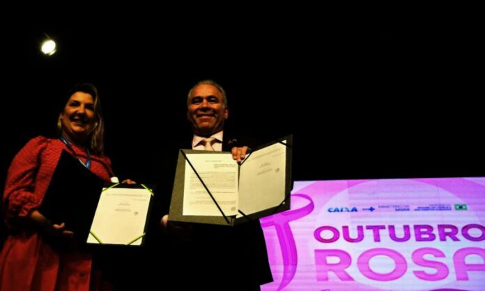 Durante o evento, foi assinado também um acordo de cooperação técnica assinado entre Ministério da Saúde e Caixa, para que as cerca de 27 milhões de mulheres que acessam o aplicativo Caixa Tem tenham acesso a “informações preventivas e de combate ao câncer de mama”.