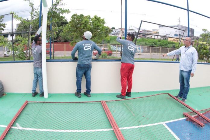 “Essas revitalizações abrangem diversos tipos de serviços, entre trocas de coberturas, onde há quadras estão todas sendo revitalizadas com troca de alambrado, serviço de pintura do piso, drenagem das quadras de areia onde não existia, troca de material de todo tipo de alvenaria, revestimentos cerâmicos, vidros, esquadrias, portas, janelas, entre outras atividades”, pontuou Emídio.