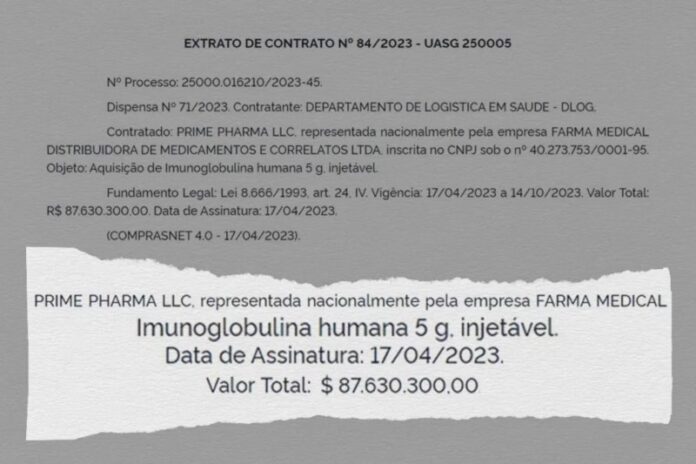 No final de fevereiro, o ministério abriu processo para a compra de 383,5 mil frascos de imunoglobulina com dispensa de licitação apontando urgência. No total, 20 empresas enviaram suas propostas, e a da Prime Pharma ficou entre as mais vantajosas.