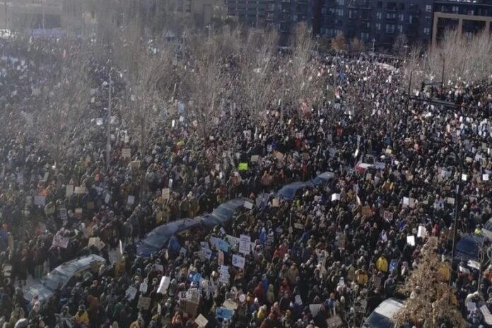 Na semana passada, milhares de pessoas saíram às ruas em Minnesota, e centenas de comércios fecharam as portas em uma paralisação semelhante, para protestar contra a morte da cidadã americana Renee Good, de 37 anos, mãe de três filhos, alvo de tiros de uma agente do ICE. No dia seguinte à manifestação, Alex Pretti, de 37 anos, enfermeiro da rede de veteranos de guerra, foi morto por agentes federais em outra operação em Minneapoli.