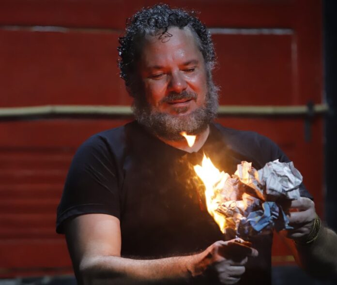 “É um trabalho teatral, uma encenação, mas que se coloca num lugar de fronteira da própria linguagem, no sentido que ele também é um testemunho de vida”, explica o artista.