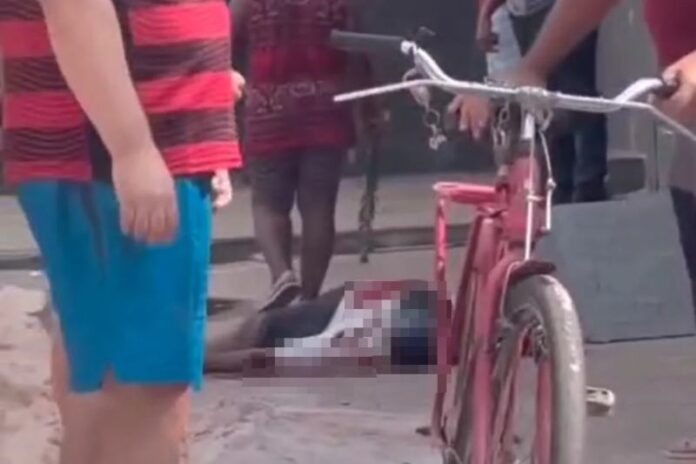 Em vídeo gravado por testemunhas, é possível ver o corpo do homem no chão, ensanguentado e rodeado por curiosos.