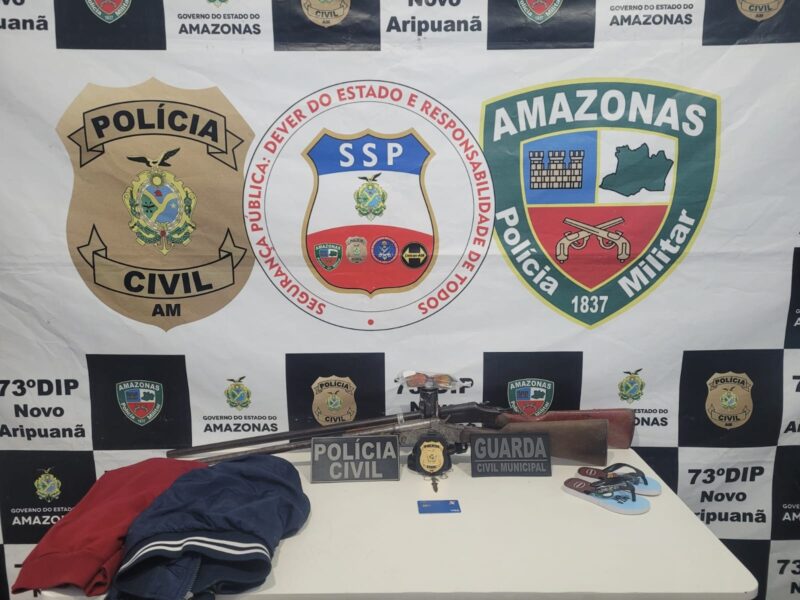 A Polícia Civil do Amazonas (PC-AM), por meio da 73ª Delegacia Interativa de Polícia (DIP) de Novo Aripuanã (a 227 quilômetros de Manaus), com apoio da Polícia Militar (PMAM) e da Guarda Civil Municipal (GCM), efetuou a prisão em flagrante de Jeferson Campos Paes, de 20 anos, por furto qualificado e posse ilegal de arma de fogo de uso permitido. A ação policial ocorreu na sexta-feira (07/02), no bairro Bolívia, área urbana do município.