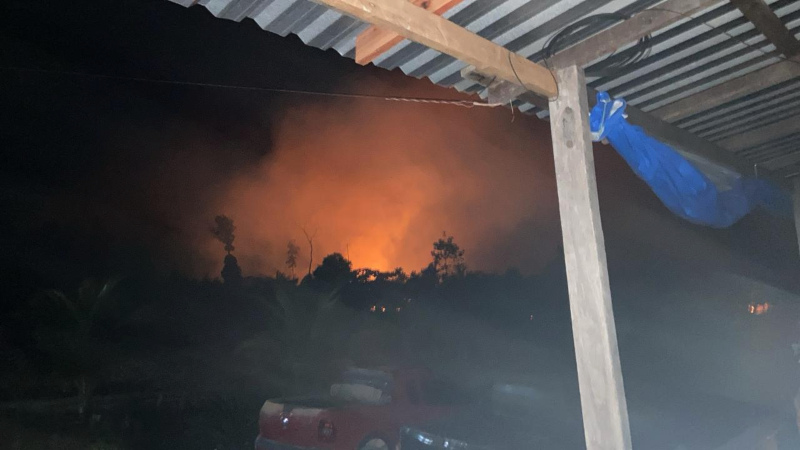 Outro áudio revela a angústia de uma moradora que relata o avanço das chamas em direção a duas casas na comunidade. Ela menciona que apenas quatro homens estão tentando conter o fogo, sem equipamentos adequados, durante a noite. “Os meninos estão tentando apagar, mas são apenas quatro no meio da mata de noite”, disse ela, temendo que o incêndio alcance as residências.