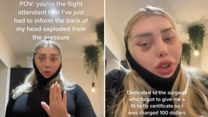 “Estávamos no avião, estava frio, fomos dormir porque estávamos viajando desde as 2h. Quando acordei, estava com muita dor ”, contou a jovem no TikTok. “Eu me levantei, fui ao banheiro e ouvi um estalo audível e meu coração estava tipo [batendo rápido], e eu fiquei tipo ‘O que diabos está acontecendo?’”, explicou.