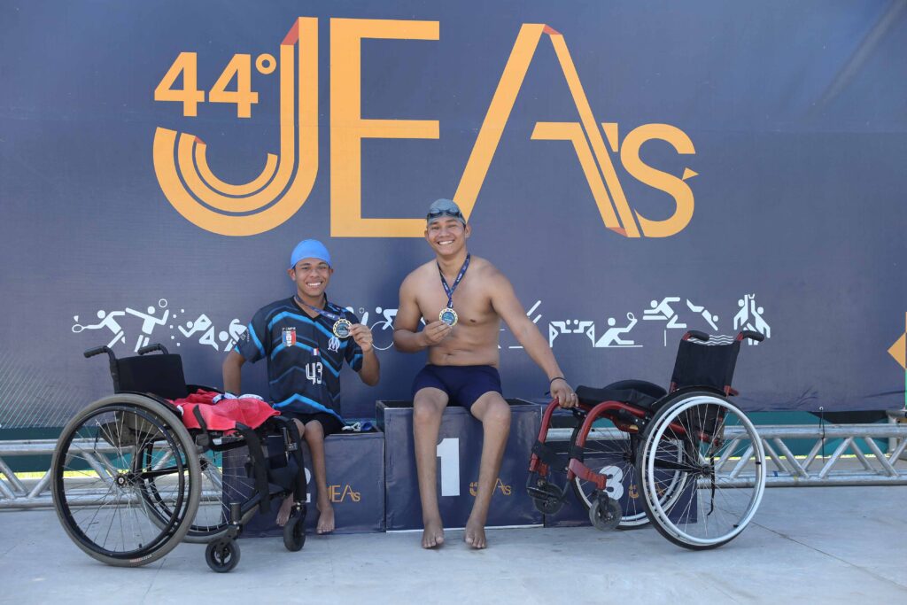 As primeiras provas da natação foram realizadas pelos atletas com deficiência. Os competidores PCDs disputaram no nado crawl, costa e peito. Aluno da Escola Estadual (EE) Estelita Tapajós, o paratleta Adison Vitor, 16, comemorou a conquista de mais uma medalha, na 2ª participação dele no JEAs.