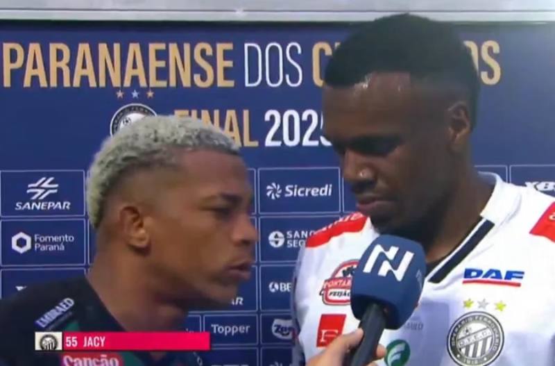 Júlio Rodrigues, jogador do Maringá, invadindo a entrevista do Jacy, do Operário, pra dizer que a final do Campeonato Paranaense foi roubado.