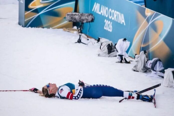 Após a prova, realizada no estádio de esqui cross-country de Tesero, no Vale di Fiemme (Itália), Diggins caiu de joelhos na neve, visivelmente em sofrimento, gemendo e chorando enquanto recebia atendimento médico imediato.