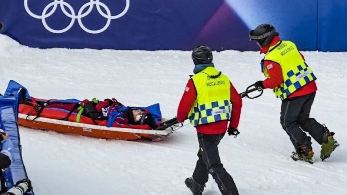 Após o impacto com a neve, Liu permaneceu imóvel no solo até a chegada da equipe médica da Olimpíada de Inverno.