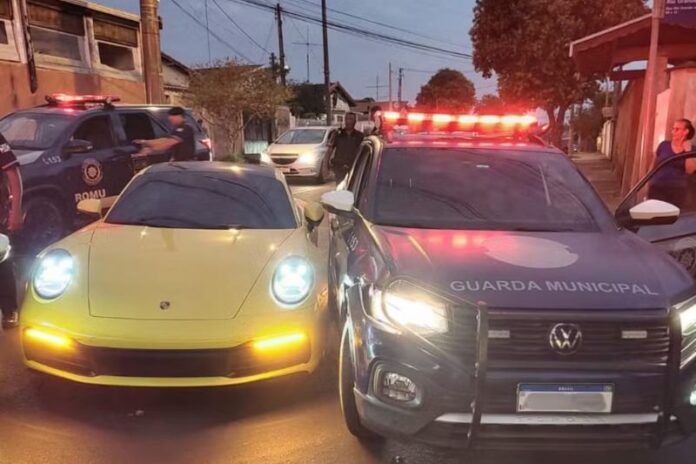 Um jovem, de 21 anos, que dirigia um Porsche amarelo sem placas, tentou fugir durante abordagem e acabou colidindo com uma viatura da Guarda Civil Municipal de Jaguariúna, no interior de São Paulo, nesse domingo (7/9).