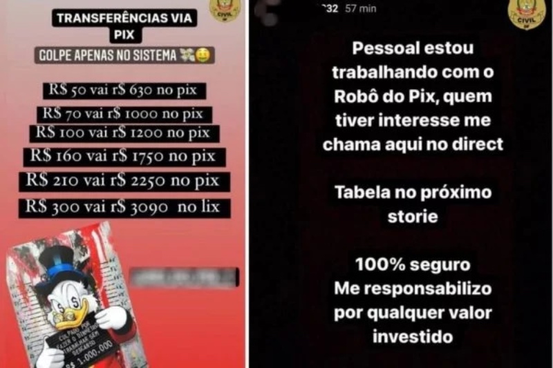De acordo com a corporação, as tabelas com os valores eram publicadas na internet. A informação repassada pelo suspeito era de que se as pessoas fizessem as transferências por Pix em determinados valores, receberiam o dinheiro multiplicado em pouco tempo. No entanto, as vítimas não recebiam o retorno.