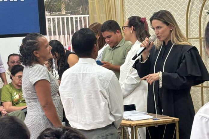 A magistrada fez questão de chamar cada casal ao palco para responder o tradicional “sim” e ouvir um pouco da história de cada um ao realizarem a troca de alianças, como aconteceu com um dos casais, junto a 43 anos, mas que não havia tido oportunidade de oficializar a união, que já havia gerado cinco filhos.
