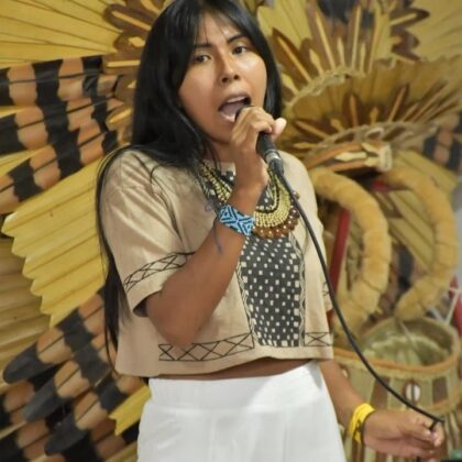Artesã de primeiríssima qualidade, com know-how e expertise em pintura corporal, a compositora e cantora Laiz Sateré foi contemplada pela Política Nacional Aldir Blanc de Fomento à Cultura (PNAB) – um marco na política pública de cultura do Brasil – que lhe abriu as portas para realização de seu grande sonho: o reconhecimento de seu povo com a gravação o seu primeiro álbum musical.