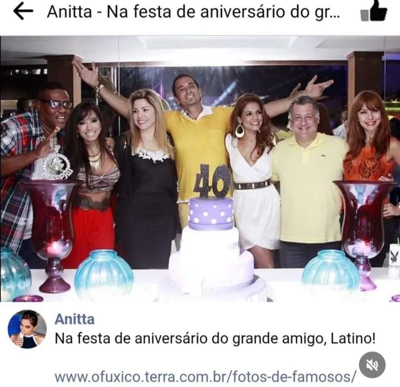 As fotos foram feitas no aniversário de 40 anos do cantor, em 2013. Anitta chegou a publicar uma das fotos no Facebook à época, e legendou com “Na festa de aniversário do grande amigo, Latino!”.