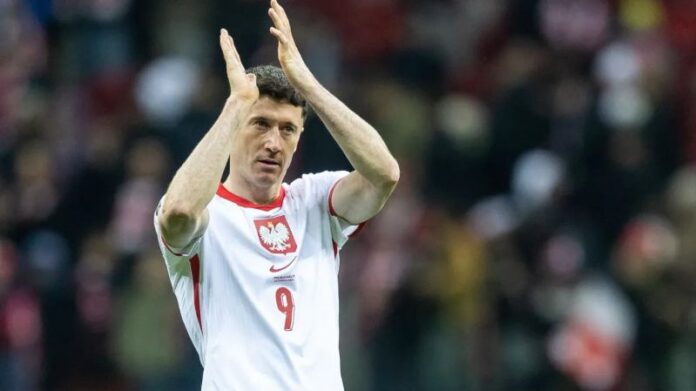 Lewandowski, de 37 anos, marcou 85 gols em 158 partidas pela Polônia.