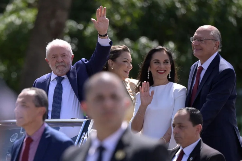 Lu desfilou no Rolls Royce presidencial, ao lado do marido, o vice-presidente, Geraldo Alckimin, de Lula e Janja.