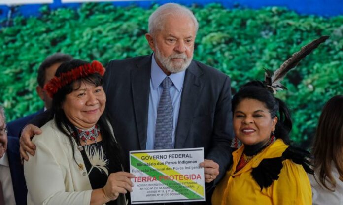“Proteger nossos territórios é garantir nossas vidas indígenas, assegurar nossa diversidade e enfrentar as emergências climáticas”, destacou a ministra dos Povos Indígenas, Sonia Guajajara.