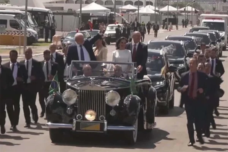 Conforme previsto, às 14h30 Lula subiu no Rolls-Royce. O petista é acompanhado da primeira-dama, Rosângela da Silva, a Janja; do vice-presidente, Geraldo Alckmin (PSB); e da vice-primeira-dama, Lu Alckmin.