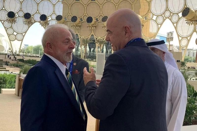 O presidente Luiz Inácio Lula da Silva (PT) se encontrou com Gianni Infantino, presidente da Fifa, em Dubai, durante a COP28. Eles trataram da realização da Copa do Mundo Feminina no Brasil, em 2027.