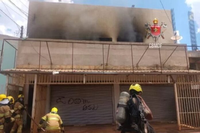 Uma residência localizada em cima de um comércio, em Valparaíso de Goiás, pegou fogo no início da tarde desta quarta-feira (26/10). A informação de que havia uma criança dentro do local levou uma mãe ao desespero. Ela acionou o Corpo de Bombeiros Militar do DF (CBMDF) para conter o incêndio e salvar a filha, que estaria no imóvel.
