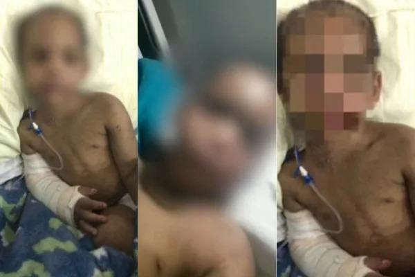 Após o episódio, o padrasto levou a criança para a casa dos pais dele, que levaram o menino para o hospital. Lá, os médicos constaram os ferimentos brutais na criança.