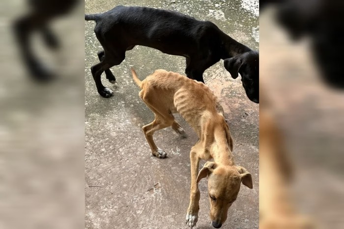 No local, os policiais constataram maus-tratos a dois cachorros de porte médio, de raça indefinida. Os animais apresentavam magreza excessiva, têmporas afundadas, corpos infestados de carrapatos, unhas grandes características de leishmaniose.